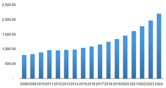 Global pharmaceutical market, 2008 – 2024 (USD Billion)